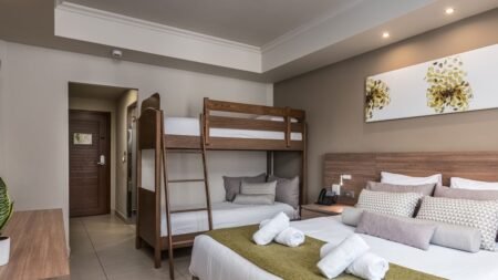 Akti Coast Club in Marmari, Kos, is de ideale bestemming voor een onvergetelijke familievakantie. Dit uitgebreide resort ligt bijna direct aan het strand en biedt alles wat je nodig hebt voor een perfecte mix van actie, ontspanning en plezier. Of je nu komt voor de prachtige zandstranden van Marmari Beach, de comfortabele kamers die ook te boeken zijn met directe toegang tot een zwembad, of de talloze faciliteiten voor jong en oud, hier beleef je een vakantie om nooit te vergeten. Met meerdere zwembaden, een splashpool voor de kinderen en sportfaciliteiten zoals tennisbanen, beachvolleybal en een fitnessruimte, hoeft niemand zich te vervelen. Het enthousiaste animatieteam zorgt dagelijks voor spelletjes en activiteiten, terwijl volwassenen kunnen ontspannen in de spa met sauna, hamam en massages. Het Ultra All Inclusive programma maakt het plaatje compleet, met een ruime keuze aan restaurants en bars waar je geniet van heerlijke gerechten en verfrissende drankjes. Akti Coast Club combineert luxe, gemak en eindeloos vakantieplezier op een toplocatie aan de Egeïsche Zee.