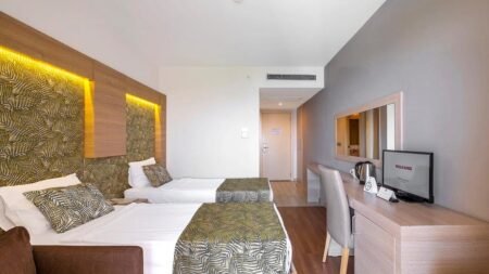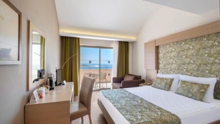 Dit resort in Okurcalar is het familieresort waar jij direct in de vakantiemodus stapt. Terwijl de kids gierend van het lachen van de glijbanen roetsjen, duik jij het infinity zwembad in of plof neer op een ligbed onder de pijnbomen. Via de tuin loop je zo naar het privéstrand aan de Turkse Rivièra, ideaal voor een ontspannen strandvakantie in Turkije. Tussendoor schuif je aan bij het All Inclusive buffet of kies je van de à la carterestaurants voor een lange zwoele avond. De ruime familiekamers van dit resort geven je hetzelfde gemak als thuis, maar dan met uitzicht op zee of groen. Zo geniet je samen elke dag van zon, waterpret en lekker eten vlak bij Alanya.