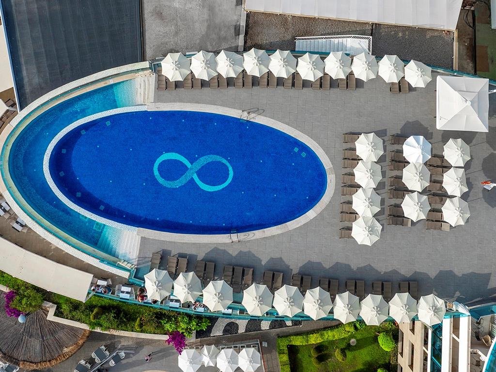 Waterpark met 16 glijbanen, Privéstrand met steiger hier, All Inclusive met 4 restaurants, Ruime familiekamers met balkon, Groene ligging tussen zee en bos, Kidsclub, speeltuin en minidisco & inclusief transfers.