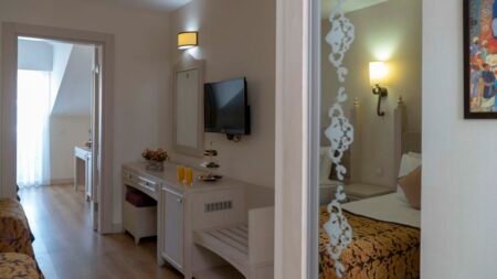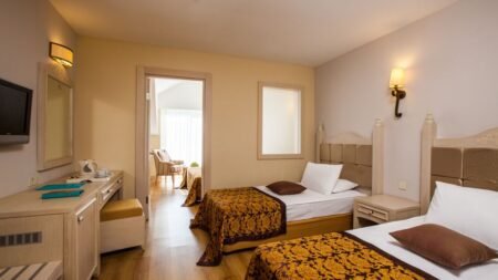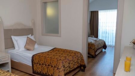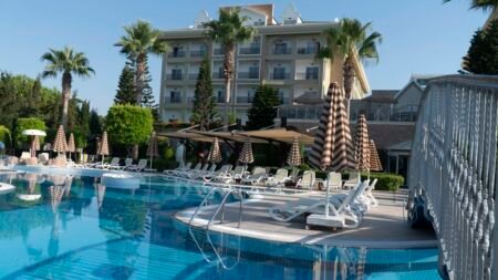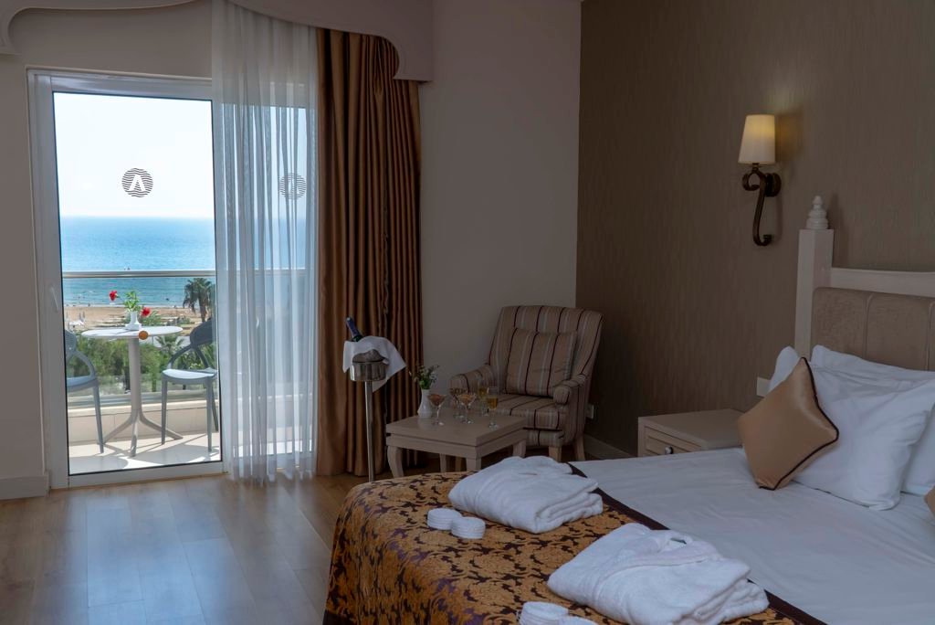 Zomer Wanneer je tussen 01-04-2025 en 31-10-2025 in deze accommodatie verblijft, is onderstaande informatie van toepassing. * Ligging * In Evrenseki * Gelegen aan het privéstrand * Gesloten in het winterseizoen * Zandstrand * Dichtstbijzijnde winkel op circa 1 kilometer * Dichtstbijzijnde restaurant op circa 1 kilometer * Dichtstbijzijnde bar op circa 1 kilometer * Manavgat op circa 12 kilometer * Side op circa 15 kilometer * Bushalte op circa 1 kilometer * Algemeen & faciliteiten * Adults Only (minimumleeftijd 16 jaar) * 1 gebouw * Maximaal 5 verdiepingen * 210 kamers * Lobby * 2 liften * Bagageruimte * Wifi in alle openbare ruimtes * Wasservice tegen betaling * Doktersservice tegen betaling * Tuin * Openbare parkeergelegenheid * Restaurants & bars * Buffetrestaurant * Adult Only * 2 à-la-carterestaurants (vooraf reserveren) * Roomservice tegen betaling * Meerdere drinkgelegenheden * 2 bars * Activiteiten & ontspanning * Aerobics * Darts * Fitness * Tafeltennis * Watersporten tegen betaling * Spafaciliteiten * Sauna * Hamam * Bubbelbad binnen tegen betaling * Massages tegen betaling * Schoonheidsbehandelingen tegen betaling * Animatie * Zwembaden * 2 buitenzwembaden * Gesloten in het winterseizoen * Eén van deze zwembaden heeft meerdere glijbanen * Binnenzwembad * Gesloten in het zomerseizoen * Verwarmd * Zonneterras * Ligbedden * Parasol * Badhanddoekenservice * Verzorging * Ultra All Inclusive * Ontbijt in buffetvorm (07.00-10.00 uur) * Laat ontbijt in buffetvorm (10.00-11.00 uur) * Lunch in buffetvorm (12.30-14.30 uur) * Diner in buffetvorm (19.00-21.00 uur) * Dineren in enkele à-la-carterestaurants 1 keer per verblijf bij een verblijf van minimaal 7 nachten * Snacks (12.30-16.00 uur) * Koffie, thee & koekjes (10.00-19.00 uur) * IJs (12.30-16.00 uur) * Middernachtsnack (22.00-07.00 uur) * Selectie geïmporteerde drankjes * Selectie lokale (non-)alcoholische drankjes (24 uur per dag) * Tegen betaling: import drankjes en roomservice * Goed om te weten * Duurzaamheidslabel(s): TravelifeHotelkamers * 2-persoonskamer Standaard Landzicht DZL * Oppervlakte van circa 30 m² * Landzicht * Airconditioning * Kluisje * Televisie * Telefoon tegen betaling * Eet- en drinkfaciliteiten * Koffie- en theefaciliteiten * Minibar * Badkamer douche, toilet, föhn, badjassen en badslippers * Wifi * Balkon (zitje) * 2-persoonskamer Standaard Zijzeezicht DZI * Oppervlakte van circa 30 m² * Zijzeezicht * Airconditioning * Kluisje * Televisie * Telefoon tegen betaling * Eet- en drinkfaciliteiten * Koffie- en theefaciliteiten * Minibar * Badkamer douche, toilet, föhn, badjassen en badslippers * Wifi * Balkon (zitje) * 2-persoonskamer Standaard Zeezicht DZM * Oppervlakte van circa 30 m² * Zeezicht * Airconditioning * Kluisje * Televisie * Telefoon tegen betaling * Eet- en drinkfaciliteiten * Koffie- en theefaciliteiten * Minibar * Badkamer douche, toilet, föhn, badjassen en badslippers * Wifi * Balkon (zitje) * 2-persoonskamer Superior Zeezicht (Comfort) DSM * Zeezicht * Airconditioning * Kluisje * Televisie * Telefoon tegen betaling * Eet- en drinkfaciliteiten * Koffie- en theefaciliteiten * Minibar * Badkamer douche, toilet, föhn, badjassen en badslippers * Wifi * Balkon of terras (zitje) * Familiekamer Standaard Zijzeezicht FZI * Oppervlakte van circa 40 m² * Zijzeezicht * Woon-/slaapkamer * Airconditioning * Kluisje * Televisie * Telefoon tegen betaling * Eet- en drinkfaciliteiten * Koffie- en theefaciliteiten * Minibar * Badkamer douche, toilet, föhn, badjassen en badslippers * Wifi * Balkon of terras (zitje)