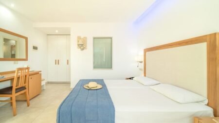 Het Aeolos Beach Resort ligt op een toplocatie. Het strand ligt direct voor het hotel waar je tal van watersporten kunt beoefenen. Maar ook het centrum van Malia ligt op loopafstand, hier vind je tal van bars, restaurants en uitgaansgelegenheden. Aeolos Beach Resort beschikt over drie zwembaden, waaronder een met twee glijbanen. Ook is er een restaurant en een bar en kun je aan je conditie werken in de fitnessruimte. Kortom, dé plek voor een verblijf vol plezier!