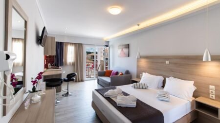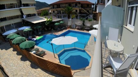 Tussen het strand en de stad Nidri vind je Aggelos, een heerlijke uitvalsbasis waar je alle kanten op kunt. Je verblijft in een fijn appartement met één, twee of drie kamers, ook ideaal voor gezinnen. Ga je de stad in op zoek naar een leuke plek om te ontbijten of schuif je liever aan in de ontbijtzaal van Aggelos? Je kunt natuurlijk ook naar de lokale supermarkt aan de overkant en je dag beginnen met een zelfgemaakt ontbijt op bed. Om vervolgens de dag rustig op te starten bij het zwembad. Je verblijft in een kleine accommodatie met maar 23 appartementen, dus er is altijd wel een ligbed en parasol vrij. En een verkoelend drankje van de zwembadbar maakt het helemaal af. Ontdek de omgeving te voet of met de auto. Alles op jouw tempo!