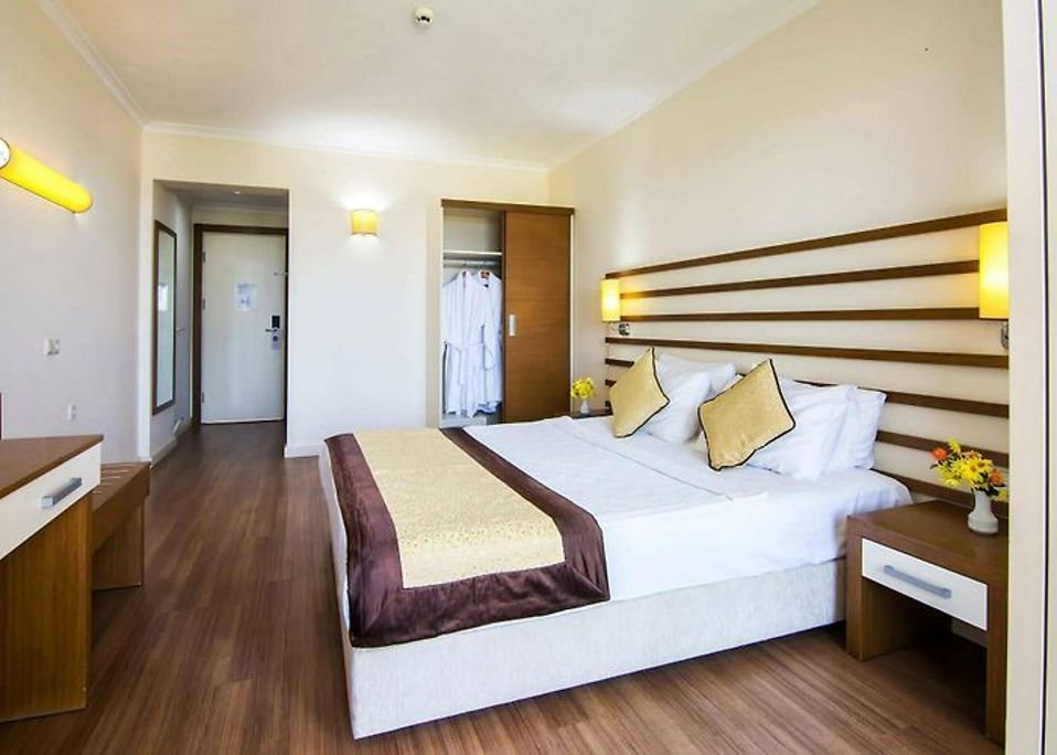 Ligging: Het hotel is gelegen in de plaats Güzelçamli, wat ‘prachtige pijnbomen” betekent en is dan ook omgeven door een prachtige natuur. Het hotel heeft een privé strand aan het hotel met een eigen pier. Het zand / kiezel strand ligt op ca. 90 meter, de ingang van het nationale park op ca. 400 meter. Verschillende (historische) bezienswaardigheden gemakkelijk te bereiken vanuit het hotel. Faciliteiten: Akbulut Hotel heeft 82 kamers verdeeld over 5 verdiepingen en gemakkelijk te bereiken via de trap of een van de 2 liften. In de mooie tuin vindt u een groot buitenzwembad met genoeg zonnebedjes en parasols, kinderzwembad en een bubbelbad. Het hotel heeft een buffetrestaurant en meerdere bars waaronder een poolbar. Er is ook een binnenzwembad, lobbybar, gameroom, speelruimte voor de kleintjes en een groot televisiescherm waar gezamenlijk naar sportwedstrijden kan worden gekeken. Bij het strand zijn zonnebedjes, zonneschermen en kleedhokjes gratis beschikbaar. Handdoekenservice met borg bij de receptie. Het hotel verzorgt avond entertainment en animatie. Uw hotelkamer: De standaardkamers zijn modern en comfortabel ingericht met airconditioning, minibar (alleen gevuld met water), lcd televisie, gratis wifi, huurkluis, telefoon en een badkamer met toilet en douche. Voor gezinnen zijn er quadkamers, een standaardkamer met extra bedden. De familiekamers bestaan uit 1 ruimte, zijn even groot als de standaardkamers en hebben als extra een stapelbed. Sport & Ontspanning: Het complex beschikt over een uitgebreid spa en fitness centrum met 4 massageruimtes, fitness centrum, Turkse bad en sauna. Verschillende behandelingen tegen betaling. Verder kunt u gebruik maken van de verschillende sport- en spelmogelijkheden zoals zwembad spelletjes, aerobics, tafeltennis, basketbal, volleybal, schaken en darts. Biljarten tegen betaling. Verzorging: Het All Inclusive concept is als volgt; ontbijtbuffet (07.30-10.00), lunchbuffet (12.30-14.00), snacks (15.00-16.00), koffietijd (17.00-18.00) en dinerbuffet (19.30-21.30). Tussen 10.00 en 23.00 zijn water, frisdranken, bier, raki, lokale vodka en lokale wijn inbegrepen bij de op dat moment geopende bars. Tegen betaling: alle drankjes na 23.00 uur, verse vruchtensappen, import drankjes en Turkse koffie. LET OP: In het voor/naseizoen en tijdens de winter periode (1 november t/m +/- 31 maart) kan het voorkomen dat bepaalde faciliteiten niet beschikbaar zijn i.v.m. onderhoud, bezetting of weersomstandigheden. Zo zijn veelal de buitenfaciliteiten niet beschikbaar, de buitenzwembaden buiten gebruik en geen of beperkte animatie aanwezig. Ook kan het voorkomen dat een accommodatieverschaffer vergoeding kan vragen voor bepaalde faciliteiten of diensten en dat het All Inclusive aanbod iets beperkter kan zijn. Het kan voorkomen dat een deel van een hotel(complex) tijdelijk niet in gebruik is vanwege onderhoud of lage bezetting.