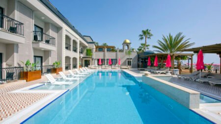 Zomer Wanneer je tussen 01-04-2025 en 30-11-2025 in deze accommodatie verblijft, is onderstaande informatie van toepassing. * Ligging * Gelegen aan het openbare strand (Cleopatra strand) * Privégedeelte van de accommodatie * Zandstrand * Ligbedden met matrasjes * Parasol * Dichtstbijzijnde winkel op circa 30 meter * Dichtstbijzijnde restaurant op circa 10 meter * Dichtstbijzijnde bar op circa 10 meter * Alanya op circa 800 meter * Bushalte op circa 10 meter * Algemeen & faciliteiten * Adults Only (minimumleeftijd 18 jaar) * 1 gebouw * Maximaal 3 verdiepingen * 67 kamers * Receptie * 24 uur per dag * Lobby met zitgedeelte * Lift * Bagageruimte * Winkel * Wasservice tegen betaling * Doktersservice tegen betaling * Tuin * Privé parkeergelegenheid * Restaurants & bars * Buffetrestaurant * À-la-carterestaurant tegen bijbetaling * Restaurant met internationale specialiteiten * Roomservice tegen betaling * Drinkgelegenheid * Bar * Activiteiten & ontspanning * Spafaciliteiten * Sauna tegen betaling * Hamam tegen betaling * Massages tegen betaling * Shows voor volwassenen * Eén keer per week * Zwembaden * Buitenzwembad * Zoetwater * Zonneterras * Ligbedden met matrasjes * Parasol * Badhanddoekenservice gratis met borg * Verzorging * Halfpension * Ontbijt in buffetvorm * Diner in buffetvorm * Goed om te weten * Huisdieren zijn niet toegestaanHotelkamers * 2-persoonskamer Standaard DZ * Oppervlakte tussen 18 en 20 m² * Airconditioning * Kluisje tegen betaling * Televisie * Telefoon tegen betaling * Eet- en drinkfaciliteiten * Koffie- en theefaciliteiten * Minibar tegen betaling * Badkamer met douche, toilet en föhn * Wifi * Balkon (zitje)