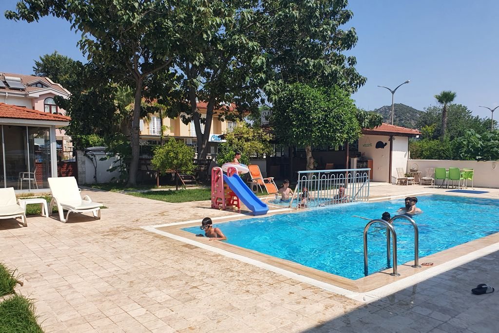Direct naar: * Ligging () * Faciliteiten () * Restaurants & Bars () * Appartement () * Kinderfaciliteiten () * Zwembaden () * Verzorging () * Ligging: Ali Baba Boutique * Gelegen naast een veld met granaatappelbomen * Gezellige centrum van Dalyan op ca. 800 meter * Mooiste zandstrand van Turkije; Iztuzu turtle beach op ca. 12 kilometer * Bushalte voor de deur van het hotel * Winkels en restaurants op ca. 300 meter Faciliteiten * 1 gebouw met 2 verdiepingen * Geen lift aanwezig * 6 appartementen * Receptie * Bagageruimte * Lobby * Tuin met gezellige Turkse zithoek en hangmatten * Gratis wifi in de openbare ruimtes * Wasserette* (selfservice) * Openbare parkeerplaatsen * Boeken- en spelletjes te leen bij de bar *Tegen betaling Restaurants & bars * 1 buffetrestaurant * 1 bar Appartement * 2-kamerappartement (1-4 personen) * Ca. 45 m² * Bestaat uit een woon-/slaapkamer met slaapbank en een aparte slaapkamer * Airconditioning * Satelliettelevisie * Kluisje * Wifi * Kitchenette * 4-pits kookplaat * Broodrooster * Koelkast * Koffie-/theezetfaciliteiten * Douche * Toilet * Föhn * Balkon of terras met zitje * 3-kamerappartement (2-6 personen) * Ca. 79 m² * Bestaat uit een woon-/slaapkamer met slaapbank en 2 aparte slaapkamers * Dezelfde faciliteiten als het 2-kamerappartement Kinderfaciliteiten * 1 kinderzwembad * Midiclub 1 x per week (4-12 jaar) * Speeltuintje Zwembaden * 1 buitenzwembad * Verwarmd en overdekt bubbelbad * Zonneterras met gratis ligbedden, matrasjes en parasols * Badhanddoekenservice met borg Verzorging Zomer : Ali Baba Boutique * Verblijf o.b.v. Logies Tegen betaling kun je ter plaatse dagelijks een lekker ontbijt van lokale producten bestellen. Ook kun je genieten van heerlijke huisgemaakte Turkse en Internationale hapjes. Een aantal keer per week wordt er verse cake en taart gebakken en 1 maal per week wordt er een Turks dinerbuffet georganiseerd, waar je tegen betaling gebruik van kunt maken.