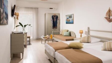Genieten van een heerlijke vakantie in Griekenland doe je bij dit hotel. Het hotel is volledig gebouwd in Griekse stijl. Hierdoor krijg je het ultieme vakantiegevoel. De kamers zijn comfortabel, elegant en ook hier komt die echte traditionele stijl weer terug. Er is genoeg keuze om lekker te relaxen. Ga je aan het heerlijke strand liggen? Of kies je een ligbedje uit bij één van de 4 zwembaden om eindelijk te beginnen aan het boek dat je hebt meegebracht? Elke dag is het weer genieten in Almyrida.