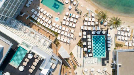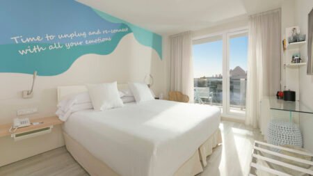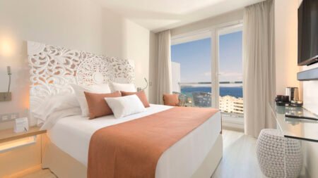 Het Amare Beach Hotel Ibiza is een trendy adults recommended hotel aan het strand van Cala De Bou bij San Antonio. Dit 4-sterren hotel werd in 1969 gebouwd en is in 2019 volledig gerenoveerd naar een trendy concept. De kamers zijn ingericht aan de hand van moderne invloeden en hebben verschillende uitzichten. Ook hebben de kamers bijzondere namen zoals ‘Oh La La’ en ‘I Was Here’. Het hotel is ideaal gelegen net buiten het stadje San Antonio, waar genoeg te beleven valt. Zo zijn er verschillende uitzichtpunten langs de kust en kun je een bezoekje brengen aan de haven van San Antonio. Verder kun je heerlijk ontspannen aan het strand of zwemmen in het rooftop zwembad met een prachtig uitzicht over de baai!