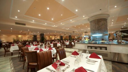 AMC Royal Hotel & Spa ligt net buiten het centrum van Hurghada, direct aan een privéstrand met uitzicht op de kalme, blauwe zee. Het resort is compact maar compleet, met nette kamers, een ontspannen sfeer en alles binnen handbereik. Ideaal voor wie niet houdt van massaal, maar wel van gemak en verzorging. Je vindt hier een zwembad, verschillende bars, een buffetrestaurant en zelfs een duikcentrum voor wie de Rode Zee echt wil ontdekken. Het personeel is vriendelijk en behulpzaam zonder overdreven poespas. AMC Royal Hotel & Spa is vooral een fijne uitvalsbasis voor koppels of vrienden die hun vakantie graag relaxed en overzichtelijk houden. Zon, zee en een koud drankje binnen handbereik – dat is AMC Royal Hotel & Spa in een notendop.