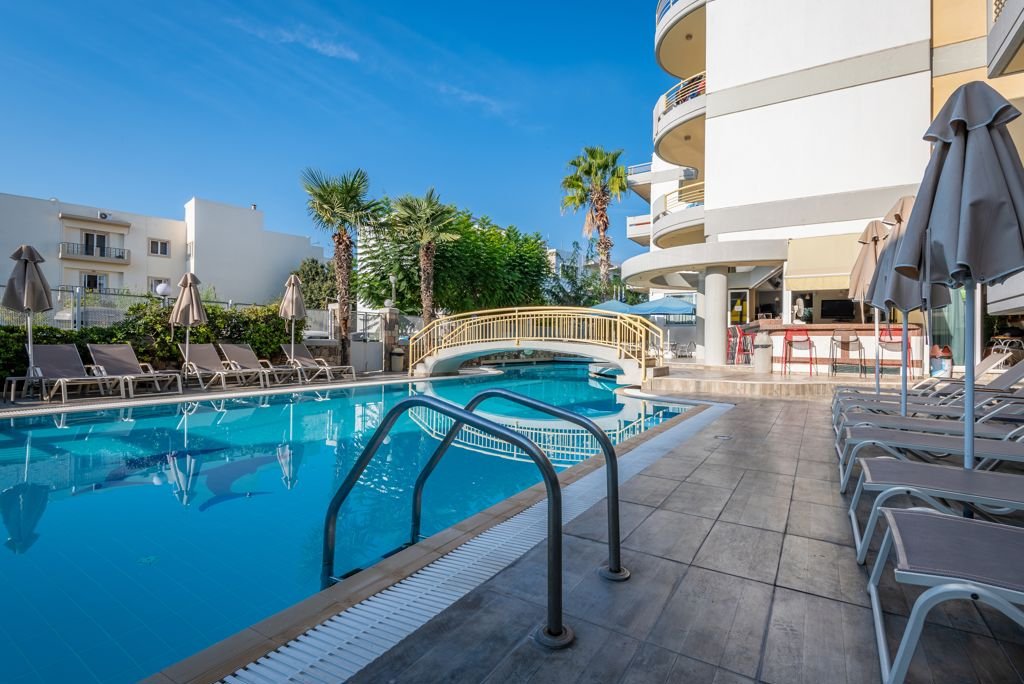 Direct naar: * Ligging () * Faciliteiten () * Restaurants & Bars () * Hotelkamers () * Sport & Ontspanning () * Kinderfaciliteiten () * Zwembaden & Strand () * Verzorging () Ligging: Angela Appartementen * Op loopafstand van bars, restaurants en winkels * Ca. 500 meter van het gezellige centrum van Kos-Stad * Ca. 500 meter van het zandstrand * Openbaar vervoer op ca. 100 meter Faciliteiten * 2 gebouwen met 3 verdiepingen * 47 kamers * In beide gebouwen 1 lift * 24-uursreceptie * Lobby * Wifi in het gehele complex Restaurants & bars * 1 snack-/poolbar Hotelkamers * Studio (1-2 personen) * Ca. 28 m² * Airconditioning* * Kluisje* * Televisie * Telefoon* * Wifi * Kitchenette met koelkast, 2-pits kookplaat en koffie-/theezetfaciliteiten * Bad/douche * Toilet * Föhn * Balkon met zitje *Tegen betaling * 2-kamerappartement (2-4 personen) * Ca. 35 m² * Bestaat uit een woon-/slaapkamer met slaapbank en een aparte slaapkamer * Dezelfde faciliteiten als de studio * 3-kamerappartement (2-6 personen) * Ca. 60 m² * Bestaat uit een woon-/slaapkamer met slaapbank en 2 aparte slaapkamers * Dezelfde faciliteiten als de studio Sport & Ontspanning * Watersporten aan het strand (tegen betaling) Kinderfaciliteiten * Apart kinderbad * Babybedjes (op aanvraag) Zwembad * 1 buitenzwembad * 1 kinderbad * Zonneterras met ligbedden en parasols Verzorging Zomer: Angela Appartementen * Verblijf o.b.v. Logies