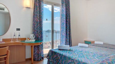 Zomer Wanneer je tussen 01-04-2025 en 31-10-2025 in deze accommodatie verblijft, is onderstaande informatie van toepassing. * Ligging * Gelegen op een heuvel * Openbaar strand op circa 300 meter * Kiezelstrand * Dichtstbijzijnde winkel op circa 400 meter * Dichtstbijzijnde restaurant * Beschikbaar bij 400 * Dichtstbijzijnde bar op circa 400 meter * Letojanni op circa 400 meter * Taormina op circa 5 kilometer * Bushalte op circa 400 meter * Treinstation op circa 500 meter * Algemeen & faciliteiten * 1 gebouw * Maximaal 6 verdiepingen * 137 kamers * Receptie * 24 uur per dag * Lobby met zitgedeelte * 3 liften * Lift in elk gebouw * Bagageruimte * Wifi in alle openbare ruimtes * Privé parkeergelegenheid tegen betaling * Openbare parkeergelegenheid * Restaurants & bars * Buffetrestaurant * Roomservice tegen betaling * Drinkgelegenheid * Bar * Activiteiten & ontspanning * Fitness * Beschikbaar bij Omimpo Hotel * Spa Center toegang tegen betaling * Binnenzwembad tegen betaling * Beschikbaar bij Omimpo Hotel * Sauna tegen betaling * Beschikbaar bij Omimpo Hotel * Bubbelbad binnen tegen betaling * Beschikbaar bij Omimpo Hotel * Massages tegen betaling * Beschikbaar bij Omimpo Hotel * Schoonheidsbehandelingen tegen betaling * Beschikbaar bij Omimpo Hotel * Animatie * Livemuziek * Zwembaden * Buitenzwembad * Apart kindergedeelte in het buitenzwembad * Zonneterras * Ligbedden * Parasol * Badhanddoekenservice gratis met borg * Verzorging * Logies & Ontbijt * Ontbijt in buffetvorm * Halfpension Plus * Ontbijt in buffetvorm * Diner in buffetvorm * Kleine selectie drankjes bij het diner * All Inclusive * Ontbijt in buffetvorm (07.30-10.00 uur) * Lunch in buffetvorm (12.30-14.00 uur) * Diner in buffetvorm (19.00-21.00 uur) * Snacks * IJs * Selectie lokale (non-)alcoholische drankjes * Goed om te weten * Huisdieren zijn toegestaan gratisHotelkamers * 1-persoonskamer Standaard EZ * Oppervlakte circa 14 m² * Airconditioning * Kluisje met borg * Televisie * Telefoon tegen betaling * Eet- en drinkfaciliteiten * Koffie- en theefaciliteiten * Minibar tegen betaling * Badkamer met bad of douche, toilet en föhn * Wifi * Niet alle kamers hebben een balkon of terras * 2-persoonskamer Standaard DZ * Oppervlakte circa 18 m² * Airconditioning * Kluisje met borg * Televisie * Telefoon tegen betaling * Eet- en drinkfaciliteiten * Koffie- en theefaciliteiten * Minibar tegen betaling * Badkamer met bad of douche, toilet en föhn * Wifi * Niet alle kamers hebben een balkon of terras * 2-persoonskamer Standaard Zijzeezicht DZI * Oppervlakte circa 18 m² * Zijzeezicht * Airconditioning * Kluisje met borg * Televisie * Telefoon tegen betaling * Eet- en drinkfaciliteiten * Koffie- en theefaciliteiten * Minibar tegen betaling * Badkamer met bad of douche, toilet en föhn * Wifi * Balkon (zitje)