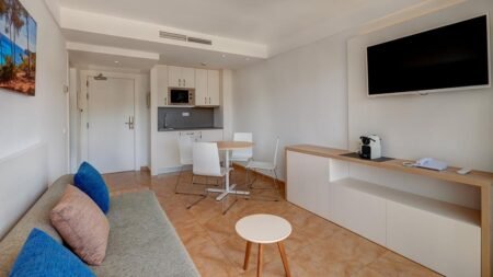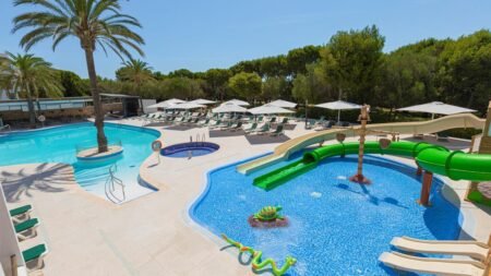 Beleef de magie van Majorca tijdens je vakantie. Deze accommodatie is de ideale uitvalsbasis voor een ontspannen verblijf. Gelegen in het hart van de plaats biedt het gemakkelijke toegang tot prachtige stranden. Geniet van de zon aan het zwembad met glijbanen of ontspan in de wellnessruimte. Voor de kinderen is er een speeltuin en een splash park bij het hotel. Proef heerlijke gerechten in het buffetrestaurant en drink je favoriete drankje bij de café bar. De regio staat bekend om haar adembenemende landschappen en levendige cultuur. Spanje biedt een rijke geschiedenis en een smaakvolle keuken. Ontdek nabijgelegen bezienswaardigheden, zoals een natuurpark op slechts 10 minuten rijden. Of maak een dagtrip naar een historische stad. De moderne faciliteiten en comfortabele appartementen met balkon zijn perfect voor gezinnen en koppels.