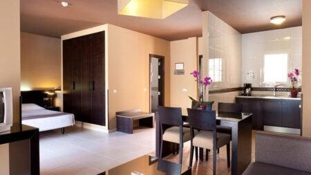 In Aparthotel El Duque zit je goed voor een heerlijke vakantie op het veelzijdige eiland Tenerife. ’s Morgens wanneer je bent uitgeslapen in je comfortabele appartement, staat er een lekker ontbijt voor je klaar. Dat is nog eens een goed begin van de dag. Om van het warme zonnetje te genieten zijn er maar liefst drie zwembaden met ligbedden. Voor de kinderen is er een apart kinderbad en kunnen zij zich vermaken in de miniclub. In de avond zorgt het animatieteam voor vertier. Ga je er liever op uit? In de buurt zijn er veel winkels en restaurants te vinden. Onderweg pak je gezellig even een terrasje mee voor een verkoelend drankje. Dit wordt een vakantie om nooit meer te vergeten!