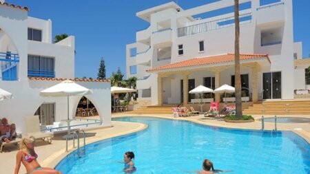 Het gemoedelijke en sfeervolle aparthotel Petrosana ligt op loopafstand van het zandstrand en het bruisende centrum van Ayia Napa. Het is een ideaal vakantieadres voor vakantiegangers die tijdens de vakantie graag alles binnen handbereik hebben. Petrosana heeft een moderne en frisse uitstraling aan zowel de binnen-als buitenkant. De studio’s en appartementen bieden je een fijn comfort en zijn voorzien van moderne gemakken.