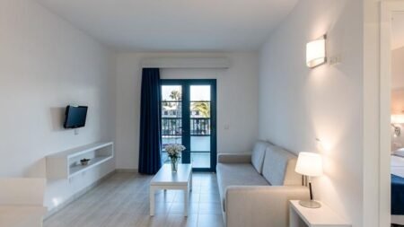 Aparthotel THB Tropical Island Resort heeft alles in huis voor een heerlijke vakantie. Er zijn maar liefst 16 zwembaden, waaronder een adults only zwembad en een groot zwembad met twee glijbanen. Voor nog meer waterpret is er een waterspeelplein. Terwijl je met een boekje in de ene hand en een verfrissend drankje in de andere geniet van een welverdiende vakantie, vermaken de kinderen zich dus prima met hun vakantievriendjes en -vriendinnetjes. Dit wordt een topvakantie voor het hele gezin! Het resort is omgeven door veel groen en gebouwd als een soort vakantiepark met veel privacy, waardoor het kleinschalig aanvoelt. Aan vermaak is geen gebrek; laat je opzwepen tijdens een Zumba les, leef je uit op meerdere sportvelden voor onder andere tennis of voetbal, of dompel jezelf onder in ontspanning tijdens een bezoek aan het wellnesscenter. Een vakantie in THB Tropical Island Resort is geheel compleet voor jong en oud!