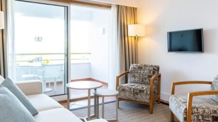 Aparthotel The Patio Suite is een modern complex met ruime suites voor het hele gezin. Het hotel heeft vier zwembaden en ligt op zo’n 1,2 km van het mooie strand Falesia. Op loopafstand vind je verschillende restaurants en gezellige cafés. De moderne en comfortabele kamers hebben allemaal een aparte slaapkamer, woonkamer, keuken en een balkon.