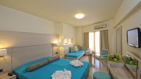 Maak het jezelf makkelijk en vier hier je vakantie. Een hotel op ongeveer 50 passen lopen van het zandstrand, zacht voor de portemonnee en met alle maaltijden inbegrepen. Want hier verblijf je All Inclusive. Het hotel krijgt stap voor stap een facelift. Boek een verblijf in een superior kamer, zonder of met zeezicht, en je hebt een kamer die wat meer up to date is. Gouves is een badplaats waar je kunt genieten van het kalme Griekse leven. Behoefte aan wat meer vertier? Dan zit je zo het levendige Chersonissos.