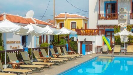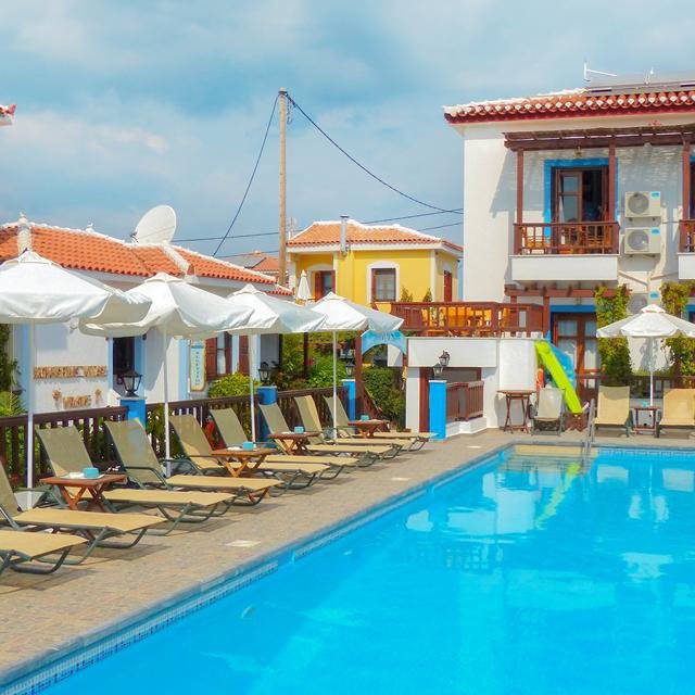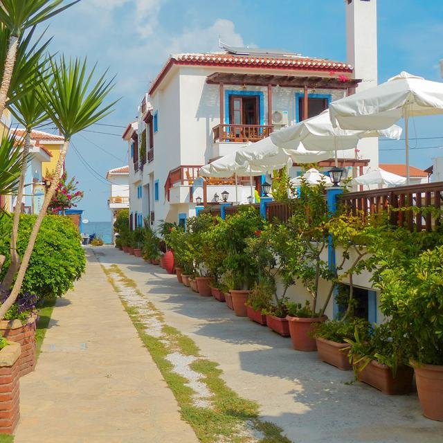 De spierwitte huisjes met blauwe kozijnen steken af tegen de felblauwe lucht, wat voor dat typisch Griekse sfeertje zorgt. Iedere ochtend kun je van een lekker zelfgemaakt ontbijtje genieten, maar er kan ook een afspraak gemaakt worden met de lieve eigenaren, zodat je bij de bar van het hotel een ontbijtje geserveerd krijgt. De tuin, vol met kleurrijke bloemen, is de ideale plek om even rustig weg te dromen en een verkoelende duik in het zwembad te nemen.