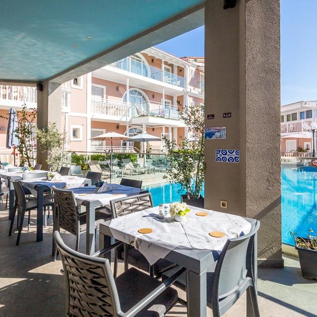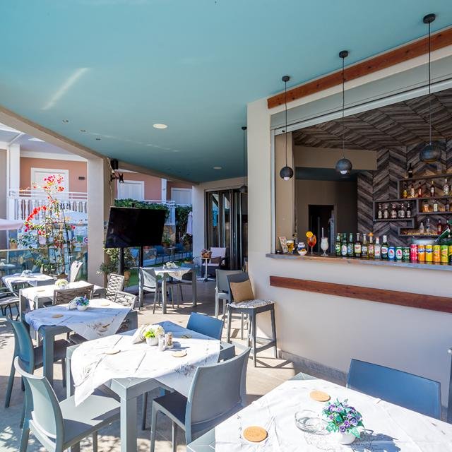 Je verblijft in volledig gerenoveerde studio’s en appartementen. Alle appartementen zijn fantastisch mooi ingericht, met oog voor detail. Verder beschikken ze over een eigen balkon, waarvan sommige ook een uitzicht hebben op het zwembad. Dit is gelijk een ideaal plekje om lekker weg te doezelen onder de Griekse zon of om natuurlijk lekker af te koelen. De bijbehorende poolbar serveert naast je favoriete drankje ook verschillende snacks. Maar in de directe omgeving kun je ook terecht voor leuke (souvenir)winkeltjes en typisch Griekse tavernes.
