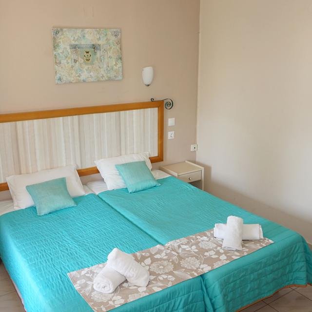 De appartementen liggen bijna verscholen tussen de groene en verzorgde tuin, dat maakt het heel kleinschalig. Tussen de vele olijf- en palmbomen ligt het zwembad waar de zonnige Griekse dagen prima doorgebracht kunnen worden. De appartementen delen hun zwembad en zonnebedjes met het naastgelegen Appartementen Averto Corfu. Voor een dagje strand, zit je hier ook goed. Je wandelt er zo naar toe.
