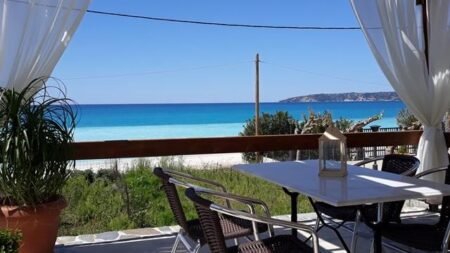 Binnen een paar stappen sta je met je voeten in het heerlijke zand. Het strand is nog bijna door niemand ontdekt, waardoor het soms net lijkt alsof je een eigen privéstrand hebt. Het knusse centrum van Lourdas is ook niet ver weg. Hier vind je leuke restaurantjes en bars.
