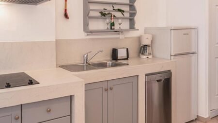 De appartementen hebben behoorlijk wat ruimte, maar het meeste fantastische van dit appartement is toch wel het uitzicht over de baai en het strand. Hier kun je wel uren naar turen zonder dat het gaat vervelen. Zin in wat actie tijdens je vakantie? Dan ligt er op ongeveer 500 meter afstand van Appartementen Dioni een surfschool. Dankzij een vaak aangenaam en verkoelend windje dat hier vaak waait, is dit een perfecte plek om deze stoere watersport te beoefenen.