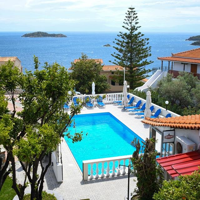 Op een heuvel bij Achladies vind je deze oase van rust: Elenis Village. Door de ligging is het uitzicht over de baai werkelijk prachtig. Voor een verkoelende duik is er een zwembad en wanneer je de heuvel afdaalt sta je zo op het strand en voel je de wind door je haren gaan. Het is een heerlijk plekje om vakantie te vieren en het behulpzame personeel geeft je graag tips om de omgeving te ontdekken. Het is hier zo lekker rustig en als je de drukte en gezelligheid wilt opzoeken, ben je zo in Skiathos-Stad. Hier kun je eindeloos ronddwalen in de kleine steegjes en straatjes. Sluit de dag af gezellig met een cocktail op een terrasje aan de haven en geniet van een typisch Griekse maaltijd in een leuke taverne. Dit is nou op en top vakantie!