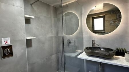 Bij aankomst in de Secrets Appartementen Finikes kom je eerst al langs een leuk binnenpleintje en het rustige zwembad met ligstoelen. Wat gezellig! Rondom het terras staan de appartementen, die in een bijzondere, traditionele stijl zijn gebouwd. Het fijne van dit terras is dat je hier heel de dag door kunt genieten van het zonnetje. De eigenaar woont zelf ook in één van de appartementen. Het is een lieve man die altijd erg vriendelijk is en goed zorgt voor ‘zijn’ gasten. Met een beetje geluk krijg je een appartement met balkon waarop je uitkijkt over de baai van Stoupa en de leuke vissershaven.