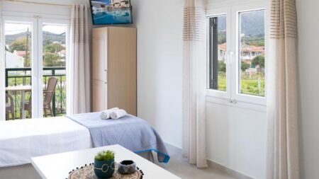 Appartementen Ippocrates is een knus en kleinschalig complex op een fantastische locatie. Zodra je hier het terras afloopt, sta je vrijwel direct op het strand van Achavari. Geniet bij het heerlijke zwembad en de poolbar van het zonnetje, beide perfect om even af te koelen en te relaxen. Neem af en toe een duik, geniet op je ligbed van het mooie weer en bestel je favoriete drankje.
