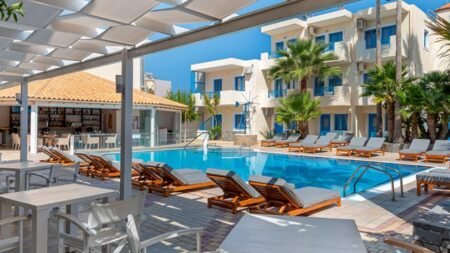 Appartementen Nana-Angela is een kleinschalig en gezellig verblijf bij het leuke kustplaatsje Analipsis. Je zit hier op een fijne plek: op loopafstand van het zand- en kiezelstrand, met taverna’s, winkels en een supermarkt in de directe omgeving.