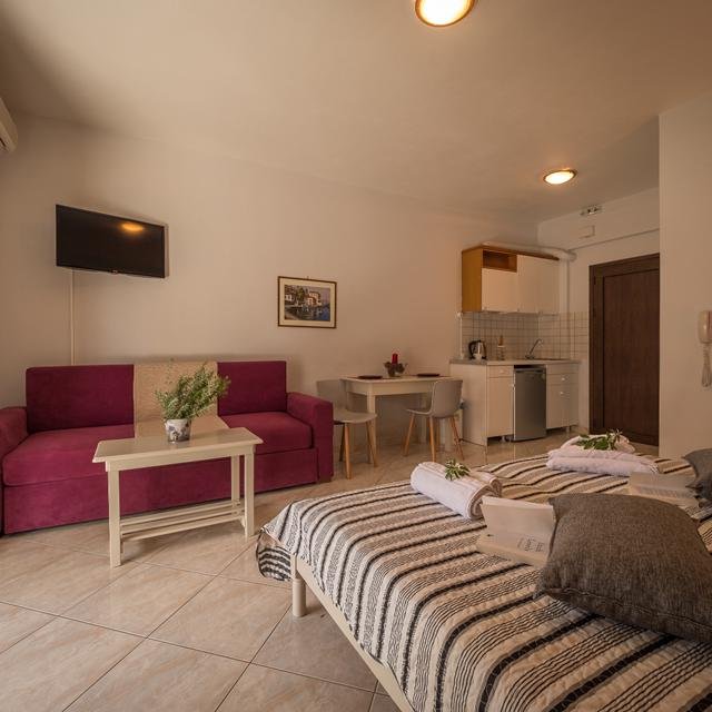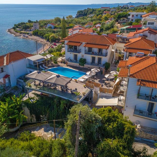 Wanneer je Appartementen Panorama ziet weet je meteen waar de naam vandaan komt: je hebt er een schitterend uitzicht over de helderblauwe zee. De zonsopkomst is betoverend en ’s avonds kun je wegdromen bij de schitteringen van het maanlicht in de zee. De zonnige appartementen zijn verdeeld over verschillende gebouwtjes en worden omgeven door een heerlijk grote tuin. In deze tuin staan tafels en stoelen, zodat je hier lekker in de zon bij kunt kletsen of tips over de omgeving kunt vragen aan de eigenaresse van de appartementen. Het kiezelstrandje is makkelijk te bereiken omdat er een directe toegang tot het strand is vanuit het hotel. Het charmante Chrani ligt op loopafstand en heeft verschillende taverna’s en barretjes.