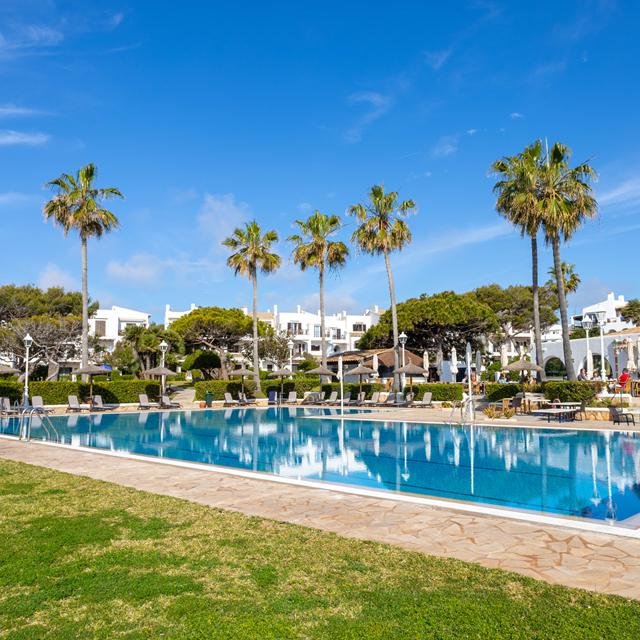 Parque Mar ligt op een prachtige locatie in Cala D’Or: vanuit de uitgestrekte, groene tuin met palm- en pijnbomen heb je een schitterend uitzicht over zee. Naar het strand, dat zich in een mooie baai bevindt, is het slechts een klein stukje wandelen.