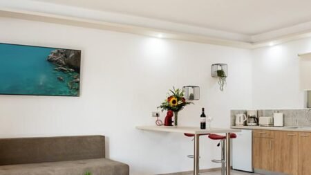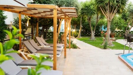 Op een fijn plekje, vlak bij Ialyssos zijn de eenvoudige Appartementen Terinikos te vinden. Dit is een ideale locatie voor je zonvakantie, terwijl je na een kort stukje lopen al winkeltjes tegen komt. Zo kun je iedere ochtend verse broodjes halen, om op het grote balkon van een zelfgemaakt ontbijtje te genieten. Tegen het witte appartementencomplex kruipt een groene klimop, en in de tuin staan kleurrijke bloemen en de bomen zorgen voor schaduwrijke plekjes als je op een bedje bij het zwembad ligt te luieren.