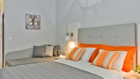 De sfeervolle appartementen liggen verspreid over vier kleurrijke gebouwen. Tussen de appartementen in ligt het zwembad, waar de zonnebedjes er uitnodigend voor je bij staan. Met een heerlijk koel drankje van de poolbar is het hier wel erg goed vertoeven. Het ontbijt en diner kun je er bij reserveren en dat raden we je zeker aan. Alle maaltijden worden door de eigenaar zelf klaar gemaakt met veel passie en liefde voor de Griekse keuken. Dat moet je proeven!