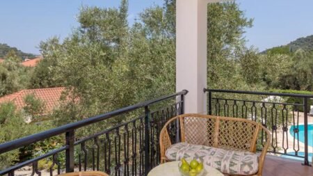 Tussen alle planten en bloemen door liggen de 4 gebouwen van Appartementen Villa Christina, waar het heerlijke zwembad absoluut een ideaal middelpunt van is. Ook is er een kleine kiosk waar ze, naast ijsjes en drankjes, lokale producten verkopen zoals wijn en olijfolie. Ook zijn er strandlakens, parasols voor op het strand en snorkelapparatuur allemaal te leen van de eigenaar;ideaal!