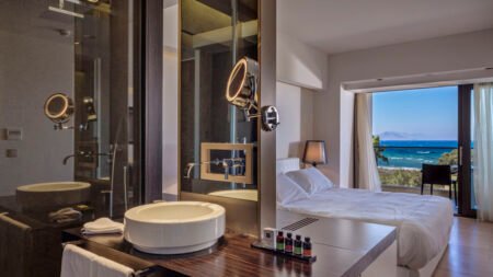 Zomer Wanneer je tussen 15-04-2025 en 30-10-2025 in deze accommodatie verblijft, is onderstaande informatie van toepassing. * Ligging * Privéstrand op circa 200 meter * Ligbedden * Parasol * Centrum van Kos-Stad op circa 2 kilometer * Dichtstbijzijnde winkel op circa 500 meter * Dichtstbijzijnde restaurant op circa 500 meter * Dichtstbijzijnde bar op circa 500 meter * Bushalte op circa 100 meter * Algemeen & faciliteiten * Adults Only (minimumleeftijd 17 jaar) * 1 gebouw * Maximaal 4 verdiepingen * 53 kamers * Receptie * 24 uur per dag * Lobby * Lift * Bagageruimte * Wifi in alle openbare ruimtes * Winkel * Wasservice tegen betaling * Doktersservice tegen betaling * op aanvraag * Tuin * Privé parkeergelegenheid * Restaurants & bars * 2 à-la-carterestaurants * Drinkgelegenheid * Bar * Activiteiten & ontspanning * Fitness * Spa Center * Sauna tegen betaling * Hamam tegen betaling * Bubbelbad binnen * Massages tegen betaling * Schoonheidsbehandelingen tegen betaling * Livemuziek * 3 keer per week * Zwembaden * Buitenzwembad * Binnenzwembad toegang tegen betaling * Zonneterras * Ligbedden * Parasol * Badhanddoekenservice gratis met borg * Verzorging * Logies & Ontbijt * Ontbijt in buffetvorm (07.30-10.30 uur)Hotelkamers * 2-persoonskamer Suite DU * Oppervlakte van circa 25 m² * Airconditioning * Kluisje * Televisie * Telefoon tegen betaling * Eet- en drinkfaciliteiten * Koffie- en theefaciliteiten * Minibar tegen betaling * Badkamer met bad of douche, toilet, föhn, badjassen en badslippers * Wifi * Balkon of terras (zitje) * 2-persoonskamer Suite (Pool Experience) DU2 * Oppervlakte circa 25 m² * Airconditioning * Kluisje * Televisie * Telefoon tegen betaling * Eet- en drinkfaciliteiten * Koffie- en theefaciliteiten * Minibar tegen betaling * Badkamer met douche in bad, toilet, föhn, badjassen en badslippers * Wifi * Terras (zitje, privézwembad) * 2-persoonskamer Suite (Pool Signature) DU3 * Oppervlakte circa 30 m² * Airconditioning * Kluisje * Televisie * Telefoon tegen betaling * Eet- en drinkfaciliteiten * Koffie- en theefaciliteiten * Minibar tegen betaling * Badkamer met douche in bad, toilet, föhn, badjassen en badslippers * Wifi * Terras (zitje, ligstoelen, privézwembad) * 2-persoonskamer Suite Zeezicht DU1 * Oppervlakte circa 25 m² * Zeezicht * Airconditioning * Kluisje * Televisie * Telefoon tegen betaling * Eet- en drinkfaciliteiten * Koffie- en theefaciliteiten * Minibar tegen betaling * Badkamer met bad of douche, toilet, föhn, badjassen en badslippers * Wifi * Balkon of terras (zitje) * 2-persoonskamer Suite Zeezicht DUM * Oppervlakte circa 25 m² * Zeezicht * Airconditioning * Kluisje * Televisie * Telefoon tegen betaling * Eet- en drinkfaciliteiten * Koffie- en theefaciliteiten * Minibar tegen betaling * Badkamer met bad of douche, toilet, föhn, badjassen en badslippers * Wifi * Balkon of terras (zitje) * 2-persoonskamer Suite Deluxe DUD * Oppervlakte circa 55 m² * Airconditioning * Kluisje * Televisie * Telefoon tegen betaling * Eet- en drinkfaciliteiten * Koffie- en theefaciliteiten * Minibar tegen betaling * Badkamer met bubbelbad, toilet, föhn, badjassen en badslippers * Wifi * Balkon of terras (zitje)