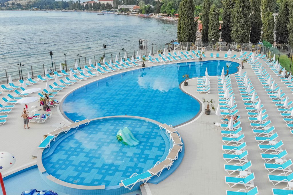 Zomer Wanneer je tussen 12-05-2024 en 21-09-2024 in deze accommodatie verblijft, is onderstaande informatie van toepassing. * Ligging * Aan een meer (Ohrid) * Centrum van Ohrid City op circa 6 kilometer * Dichtstbijzijnde winkel op circa 200 meter * Dichtstbijzijnde bar op circa 100 meter * Bushalte op circa 100 meter * Algemeen & faciliteiten * 2 gebouwen * Maximaal 8 verdiepingen * 93 kamers * Receptie * 24 uur per dag open * Lobby * 2 liften * Lift in elk gebouw * Wasservice tegen betaling * Tuin * Privé parkeergelegenheid gratis * Openbare parkeergelegenheid gratis * Restaurants & bars * Buffetrestaurant * Bar * Activiteiten & ontspanning * Basketbal * Biljart tegen betaling * Fitness gratis * Tafeltennis * Tennis * Voetbal * Volleybal * Gameroom * Zwembaden * Buitenzwembad * Meerdere buitenzwembaden voor kinderen * Eén van deze zwembaden heeft meerdere glijbanen * Binnenzwembad * Zonneterras * Ligbedden gratis * Parasol gratis * Verzorging * Logies & Ontbijt * Ontbijt in buffetvorm * All Inclusive * Ontbijt in buffetvorm (07.00-10.00 uur) * Lunch in buffetvorm (13.00-15.00 uur) * Diner in buffetvorm (19.00-21.30 uur) * Snacks * IJs * Selectie lokale (non-)alcoholische drankjes (10.00-22.00 uur)Hotelkamers * 2-persoonskamer Standaard DZ * Oppervlakte circa 16 m² * Airconditioning * Kluisje * Televisie * Eet- en drinkfaciliteiten * Mini koelkast * Badkamer met douche, toilet en föhn * Wifi