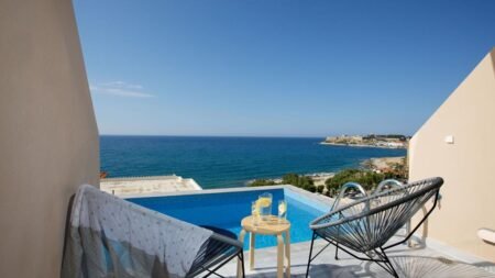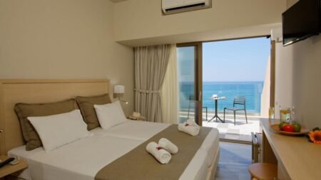 Je wordt hier verwelkomd in een oase van rust op slechts 150 meter van het strand. Dit kleinschalige hotel combineert een moderne inrichting met authentieke Griekse charme. Je verblijft in een comfortabele kamer met kitchenette, zodat je de dag kunt beginnen met een kopje thee of koffie op je eigen balkon. Het bruisende centrum ligt op loopafstand, ideaal om door sfeervolle straatjes te dwalen en op zoek te gaan naar gezellige Griekse restaurants en leuke winkels. Ontspan bij het zwembad, geniet van de zon en ervaar de persoonlijke aandacht van de gastvrije eigenaren. Zo hoort een vakantie op dit prachtige eiland te zijn.