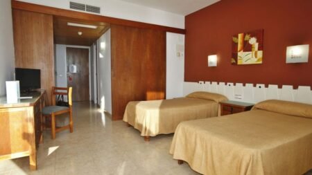 Zomer Wanneer je tussen 01-05-2025 en 31-10-2025 in deze accommodatie verblijft, is onderstaande informatie van toepassing. * Ligging * Openbaar strand op circa 20 meter * Zandstrand * Weg tussen het strand en de accommodatie * Ligbedden tegen betaling * Parasol tegen betaling * Centrum van Ibiza stad op circa 15 kilometer * Centrum van Santa eulaila op circa 24 kilometer * Centrum van Sant Antoni De Portmany op circa 1 kilometer * Dichtstbijzijnde winkel op circa 50 meter * Dichtstbijzijnde restaurant op circa 20 meter * Dichtstbijzijnde bar op circa 20 meter * Bushalte * Algemeen & faciliteiten * 1 gebouw * Maximaal 3 verdiepingen * 131 kamers * Receptie * 24 uur per dag * Lobby * Lift * Wifi in alle openbare ruimtes * Tuin * Privé parkeergelegenheid * Restaurants & bars * Buffetrestaurant * Snackbar * Drinkgelegenheid * Bar * Activiteiten & ontspanning * Biljart tegen betaling * Duikcentrum tegen betaling * Fitness * Tafeltennis * Spafaciliteiten * Sauna tegen betaling * Animatie * 4 keer per week * Shows * 4 keer per week * Livemuziek * 4 keer per week * Zwembaden * Buitenzwembad * Buitenzwembad voor kinderen * Binnenzwembad * Zonneterras * Ligbedden met matrasjes * Parasol * Verzorging * Logies * Logies & Ontbijt * Ontbijt in buffetvorm * Halfpension * Ontbijt in buffetvorm * Diner in buffetvormHotelkamers * 1-persoonskamer Standaard EZ * Oppervlakte van circa 13 m² * Airconditioning * Kluisje tegen betaling * Satelliettelevisie * Telefoon tegen betaling * Eet- en drinkfaciliteiten * Mini koelkast * Badkamer met douche, toilet en föhn * Wifi * 2-persoonskamer Standaard DZ * Oppervlakte van circa 28 m² * Airconditioning * Kluisje tegen betaling * Satelliettelevisie * Telefoon tegen betaling * Eet- en drinkfaciliteiten * Mini koelkast * Badkamer met douche, toilet en föhn * Wifi * Balkon of terras (zitje) * 2-persoonskamer Standaard Zeezicht DZM * Oppervlakte van circa 28 m² * Zeezicht * Airconditioning * Kluisje tegen betaling * Satelliettelevisie * Telefoon tegen betaling * Eet- en drinkfaciliteiten * Mini koelkast * Badkamer met douche, toilet en föhn * Wifi * Balkon of terras (zitje)