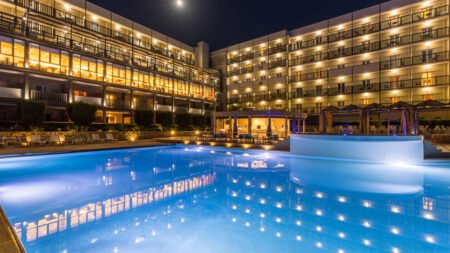Ariti Grand Hotel op Corfu is een prachtig verblijf op slechts enkele minuten lopen van het strand en op 3 kilometer afstand van het levendige Corfu-Stad. Dit hotel bied je een ontspannen sfeer met faciliteiten zoals een groot zwembad en een apart kinderzwembad, perfect voor een verfrissende duik. In het restaurant kun je genieten van smakelijke gerechten, terwijl je in één van de twee bars kunt ontspannen met een drankje. De kamers zijn ruim en comfortabel, ideaal voor een fijne vakantie. Met de nabijheid van Corfu-Stad is dit hotel een goede uitvalsbasis om zowel de stad als de prachtige stranden van het eiland te verkennen!