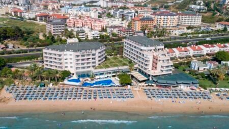 Zomer Wanneer je tussen 01-04-2026 en 31-10-2026 in deze accommodatie verblijft, is onderstaande informatie van toepassing. * Ligging * Gelegen aan het privéstrand * Ligbedden met matrasjes * Parasol * Centrum van Avsallar op circa 700 meter * Dichtstbijzijnde winkel op circa 700 meter * Dichtstbijzijnde restaurant op circa 700 meter * Dichtstbijzijnde bar op circa 700 meter * Alanya op circa 26 kilometer * Algemeen & faciliteiten * 3 gebouwen * Maximaal 6 verdiepingen * 248 kamers * Receptie * 24 uur per dag * Lobby * 4 liften * Lift in elk gebouw * Bagageruimte * Wifi in één van de openbare ruimtes * 5 winkels * Minimarkt * Wasservice tegen betaling * Doktersservice tegen betaling * op aanvraag * Openbare parkeergelegenheid * Privé parkeergelegenheid * Restaurants & bars * Buffetrestaurant * À-la-carterestaurant (vooraf reserveren) * Restaurant met verschillende specialiteiten * Open tussen ca. mei en oktober * Roomservice tegen betaling * 3 drinkgelegenheden * Bar * Lobbybar * Pool-/snackbar * Activiteiten & ontspanning * Basketbal * Beachvolleybal * Biljart tegen betaling * Boccia * Darts * Fitness * Tafeltennis * Tennis * Watersporten tegen betaling * Spa Center * Binnenzwembad * Sauna * Hamam behandelingen tegen betaling * Massages tegen betaling * Schoonheidsbehandelingen tegen betaling * Discotheek * Animatie voor volwassenen * 6 keer per week * Shows * 5 keer per week * Livemuziek * Eén keer per week * Zwembaden * 2 buitenzwembaden * 2 buitenzwembaden voor kinderen * Zonneterras * Ligbedden met matrasjes * Parasol * Badhanddoekenservice * Kinderfaciliteiten * Mini club (4-12 jaar) * 6 keer per week * Minidisco * 6 keer per week * Buitenspeeltuin * Babybedje als preferentie toe te voegen in het boekingsformulier * Babysitservice tegen betaling * ter plaatse op aanvraag * Verzorging * All Inclusive * Ontbijt in buffetvorm (07.30-10.00 uur) * Laat ontbijt in buffetvorm (10.00-11.00 uur) * Lunch in buffetvorm (12.30-14.00 uur) * Diner in buffetvorm (19.00-21.00 uur) * Dineren in het à-la-carterestaurant 1 keer per verblijf * Snacks (11.00-16.00 uur) * Koffie, thee & koekjes (10.00-00.00 uur) * IJs (11.00-16.00 uur) * Middernachtsnack (23.30-00.00 uur) * Selectie lokale (non-)alcoholische drankjes (10.00-00.00 uur) * Tegen betaling: alle consumpties in de discotheek, import drankjes, verse vruchtensappen en roomserviceHotelkamers * 2-persoonskamer Zeezicht Standaard D1M * Oppervlakte van circa 20 m² * Zeezicht * Airconditioning * Kluisje tegen betaling * Televisie * Telefoon tegen betaling * Badkamer bad of douche, toilet en föhn * Wifi tegen betaling * Balkon (zitje) * 2-persoonskamer Bijgebouw Voordeel DXE * Speciaal tarief * Locatie, formaat, uitzicht en/of faciliteiten kunnen afwijken ten opzichte van andere kamertypes * Oppervlakte tussen 19 en 21 m² * In het bijgebouw * Airconditioning * Kluisje tegen betaling * Televisie * Telefoon tegen betaling * Eet- en drinkfaciliteiten * Koffie- en theefaciliteiten * Minibar * Badkamer bad of douche, toilet en föhn * Wifi tegen betaling * Geen balkon of terras * 2-persoonskamer Bijgebouw Landzicht DXL * Oppervlakte tussen 20 en 24 m² * In het bijgebouw * Landzicht * Airconditioning * Kluisje tegen betaling * Televisie * Telefoon tegen betaling * Eet- en drinkfaciliteiten * Koffie- en theefaciliteiten * Minibar * Badkamer bad of douche, toilet en föhn * Wifi tegen betaling * Balkon (zitje) * 2-persoonskamer Standaard Zijzeezicht DZI * Oppervlakte circa 20 m² * Zijzeezicht * Airconditioning * Kluisje tegen betaling * Televisie * Telefoon tegen betaling * Eet- en drinkfaciliteiten * Koffie- en theefaciliteiten * Minibar * Badkamer bad of douche, toilet en föhn * Wifi tegen betaling * Balkon (zitje) * 2-persoonskamer Standaard Zeezicht DZM * Oppervlakte van circa 20 m² * Zeezicht * Airconditioning * Kluisje tegen betaling * Televisie * Telefoon tegen betaling * Eet- en drinkfaciliteiten * Koffie- en theefaciliteiten * Minibar * Badkamer bad of douche, toilet en föhn * Wifi tegen betaling * Balkon (zitje) * 2-persoonskamer Hoofdgebouw Voordeel DHE * Speciaal tarief * Locatie, formaat, uitzicht en/of faciliteiten kunnen afwijken ten opzichte van andere kamertypes * Oppervlakte van circa 20 m² * In het hoofdgebouw * Airconditioning * Kluisje tegen betaling * Televisie * Telefoon tegen betaling * Eet- en drinkfaciliteiten * Koffie- en theefaciliteiten * Minibar * Badkamer bad of douche, toilet en föhn * Wifi tegen betaling * Geen balkon of terras * Familiekamer Hoofdgebouw FH * Oppervlakte van circa 40 m² * In het hoofdgebouw * 2 slaapkamers * Airconditioning * Kluisje tegen betaling * Televisie * Telefoon tegen betaling * Eet- en drinkfaciliteiten * Koffie- en theefaciliteiten * Minibar * Badkamer bad of douche, toilet en föhn * Wifi tegen betaling * Balkon (zitje)