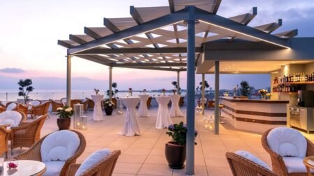 Dit 4 sterrenhotel ligt direct aan zee in Kato Paphos en staat voor rust, luxe en een vleugje romantiek. Bars, winkels en bezienswaardigheden liggen op loopafstand en een bushalte voor de deur brengt je overal naartoe. Alle kamers hebben een ruim balkon met uitzicht op zee of de tuinen. Overdag lekker zwemmen, tennissen of ontspannen in de spa. En 's avonds geniet je in een van de vijf restaurants van mediterrane en Italiaanse gerechten of zomerse thema avonden. De perfecte afsluiter? Cocktails en zeezicht in de St. Andrew's Rooftop Bar.