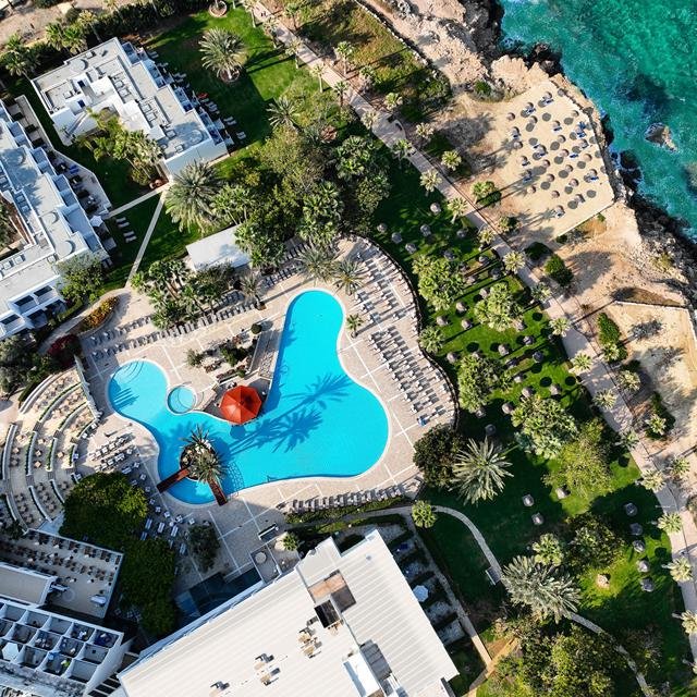Azia Resort & Spa is een stijlvol ingericht hotel gelegen tussen Paphos en Coral Bay. De omgeving is prachtig groen en de combinatie met de knalblauwe zee op de achtergrond maken het vakantieplaatje compleet. Er is een groot scala aan activiteiten voor jong en oud en er valt altijd wel iets te doen. Houd je conditie op peil tijdens een lesje Zumba of daag iemand uit voor een potje waterpolo. Wie gaat er winnen?