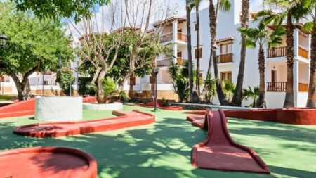 De ruime appartementen hebben een balkon of terras. Buiten geniet je van de zon op de ligbedden bij het zwembad en aan de bar bestel je je favoriete drankjes en snacks. Bij de appartementen kun je ook nog minigolf spelen of tennissen en voor kinderen is er een speeltuin.