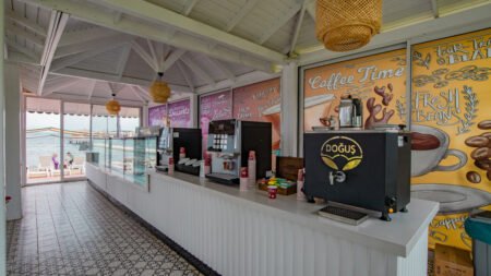 Direct naar: * Ligging () * Faciliteiten () * Restaurants & bars () * Zwembaden () * Hotelkamers () * Activiteiten & ontspanning () * Kinderfaciliteiten () * Verzorging () Ligging Azure By Yelken * Direct aan het privéstrand, gescheiden door een boulevard * Centrum van Turgutreis op ca. 2 kilometer * Bodrum op ca. 22 kilometer afstand van het hotel * Bushalte op ca. 300 meter * Dichtstbijzijnde winkels, restaurants en bars op ca. 2 kilometer Faciliteiten * Gedeeltelijk gerenoveerd in 2022-2023 * 2 gebouwen met maximaal 3 verdiepingen * 5 liften, in elk gebouw is een lift aanwezig * 299 kamers * 24-uursreceptie * Welkomstservice met een welkomstdrankje * Check-outservice met een fles water * Bagageruimte * Lobby * Tuin * Gratis wifi in de openbare ruimtes * Kapsalon* * Winkeltjes en minimarkt* * Doktersservice* * Wasservice* * Openbare parkeerplaatsen * Tegen betaling Restaurants & bars * 1 buffetrestaurant * 2 à-la-carterestaurants (vooraf reserveren) * 1 snackrestaurant * 5 bars, waaronder een Baby Bar om de melk voor de baby op te warmen * Disco Zwembaden * 2 buitenzwembaden waaronder een relaxbad * 1 buitenzwembad met 4 glijbanen (op vaste tijden geopend) * 1 verwarmd binnenzwembad * Zonneterras en zonnesteiger * Privéstrand * Ligbedden, matrasjes en parasols gratis (zwembad en strand) * Gratis badhanddoekenservice Hotelkamers * Standaardkamer landzicht (1-3 personen) * Gedeeltelijk gerenoveerd * Ca. 22-25 m² * Telefoon* * Airconditioning * Satelliettelevisie * Kluisje * Minibar (gevuld met frisdrank bij aankomst) * Wifi * Koffie-/theezetfaciliteiten * Douche * Toilet * Slippers * Föhn * Balkon met zitje * Tegen een meerprijs te boeken met zeezicht * Ook boekbaar met stapelbed *Tegen betaling De voordeelkamer (2-3 personen) kan qua faciliteiten en ligging afwijken van de standaardkamer * Superiorkamer (min. 2 pers. en max. 2 volw. + 2 kind.) * Ca. 45-50 m² * Bestaat uit 1 ruimte met extra bedden * Dezelfde faciliteiten als de standaardkamer landzicht Activiteiten & ontspanning * Fitness * Aerobics * Yoga * Boccia * Darts * Beachvolleybal * Tafeltennis * Watersporten aan het strand* * Turks bad * Sauna * Binnenzwembad * Massages en behandelingen* * 6 dagen per week entertainment *Tegen betaling Kinderfaciliteiten * 1 kinderzwembad * 1 verwarmd binnen kinderzwembad * Kidsclub (4-12 jaar) * Minidisco * Speeltuintje * Babybedjes op aanvraag en tegen betaling * Babysitservice op aanvraag en tegen betaling Verzorging Zomer: Azure By Yelken * Verblijf o.b.v. Ultra All Inclusive: * Ontbijt in buffetvorm (07.00-10.00 uur) * Laat ontbijt in buffetvorm (10.00-10.30 uur) * Lunch in buffetvorm (12.30-14.00 uur) * Diner in buffetvorm (18.30-21.00 uur) * Snacks (12.00-17.30 uur) * IJs 24 uur per dag * Koffie/thee en koekjes (12.00-17.30 uur) * Nachtsnack (23.30-01.00 uur) * Bij een verblijf van minimaal 8 dagen kun je 1 maal dineren in een van de à-la-carterestaurants (vooraf reserveren) * Geselecteerde lokale alcoholische en alcoholvrije drankjes en een aantal import drankjes 24 uur per dag inbegrepen * Tegen betaling: importdrankjes, verse vruchtensappen, drinken in flessen, roomservice, flessen wijn en energiedrankjes en dineren in de à-la-carterestaurants buiten 1 x gratis per 8 dagen