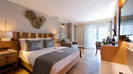 Stijlvol vakantie vieren doe je aan de Turkse Rivièra. Dit hotel is mooi gelegen in een serene tuin, en aan het zwembad zorgt de lounge muziek dat je direct in de vakantiemodus komt. De buitenbar met terras nodigt uit een drankje te halen. Dineren doe je uitgebreid én inclusief in alle à la carterestaurants. Italian Olive of Sandal Seafood? De sfeer is goed, het eten uitmuntend. Aan het eind van de avond slenter je over de boulevard nog even Side in. In de haven geniet je van de gezellige drukte, op de achtergrond de prachtig verlichte ruïnes van Apollo's tempel. Morgen misschien toch eens een bezoekje brengen.