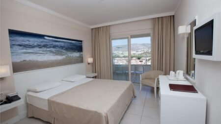 Prima kamers, drie leuke glijbanen en de hele dag door cocktails, ijsjes en Turkse mezze. Met een beach bar om te chillen aan zee en volop actie om je dag te vullen. Geniet heerlijk van het zonnetje in dit familievriendelijke hotel. Batihan Beach Resort ligt direct aan Long Beach, het mooiste strand van Kusadasi. Werken aan je kleurtje op het strand, wandelen door de levendige groene tuin of een verfrissende duik in een van de zwembaden. Het kan hier allemaal. En droom je over opstaan en direct het water in? Kies dan voor de Select Familiesuite Swim Up, en rol vanuit je bed zo het zwembad in. Dat is pas vakantie!