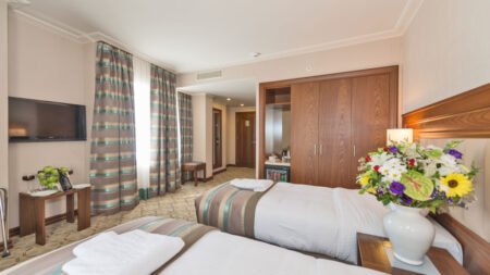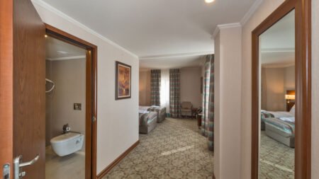 Winter Wanneer je tussen 01-12-2024 en 31-10-2025 in deze accommodatie verblijft, is onderstaande informatie van toepassing. * Ligging * Gelegen in de wijk Laleli * Dichtstbijzijnde winkel op circa 200 meter * Dichtstbijzijnde restaurant op circa 200 meter * Dichtstbijzijnde bar op circa 200 meter * Grand Bazaar op circa 700 meter * Sultan Ahmet Mosque op circa 1 kilometer * Taksim Square op circa 1,5 kilometer * Hagia Sophia op circa 1,7 kilometer * Tramhalte op circa 200 meter * Bushalte op circa 500 meter * Algemeen & faciliteiten * 1 gebouw * Maximaal 6 verdiepingen * 101 kamers * Receptie * 24 uur per dag * Lobby * 2 liften * Lift in elk gebouw * Bagageruimte * Wifi in alle openbare ruimtes * Restaurants & bars * Restaurant * Roomservice tegen betaling * 2 drinkgelegenheden * Lobbybar * Rooftopbar * Activiteiten & ontspanning * Fitness * Spa Center * Binnenzwembad * Sauna * Hamam * Bubbelbad binnen * Massages tegen betaling * Schoonheidsbehandelingen tegen betaling * Kinderfaciliteiten * Babybedje als preferentie toe te voegen in het boekingsformulier * Verzorging * Logies & Ontbijt * Ontbijt in buffetvormHotelkamers * 1-persoonskamer Voordeel EE * Speciaal tarief * Locatie, formaat, uitzicht en/of faciliteiten kunnen afwijken ten opzichte van andere kamertypes * Oppervlakte tussen 8 en 15 m² * Airconditioning * Kluisje tegen betaling * Televisie * Telefoon tegen betaling * Eet- en drinkfaciliteiten * Koffie- en theefaciliteiten * Minibar tegen betaling * Badkamer douche, toilet, föhn en badslippers * Wifi * 1-persoonskamer Deluxe ED * Oppervlakte van circa 12 m² * Airconditioning * Kluisje tegen betaling * Televisie * Telefoon tegen betaling * Eet- en drinkfaciliteiten * Koffie- en theefaciliteiten * Minibar tegen betaling * Badkamer douche, toilet, föhn en badslippers * Wifi * 2-persoonskamer Voordeel DE * Speciaal tarief * Locatie, formaat, uitzicht en/of faciliteiten kunnen afwijken ten opzichte van andere kamertypes * Oppervlakte tussen 8 en 15 m² * Airconditioning * Kluisje tegen betaling * Televisie * Telefoon tegen betaling * Eet- en drinkfaciliteiten * Koffie- en theefaciliteiten * Minibar tegen betaling * Badkamer douche, toilet, föhn en badslippers * Wifi * 2-persoonskamer Deluxe DD * Oppervlakte van circa 15 m² * Airconditioning * Kluisje * Televisie * Telefoon tegen betaling * Eet- en drinkfaciliteiten * Koffie- en theefaciliteiten * Minibar tegen betaling * Badkamer douche, toilet, föhn en badslippers * Wifi