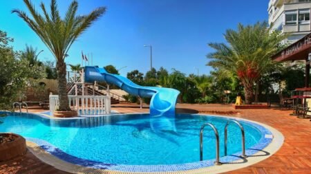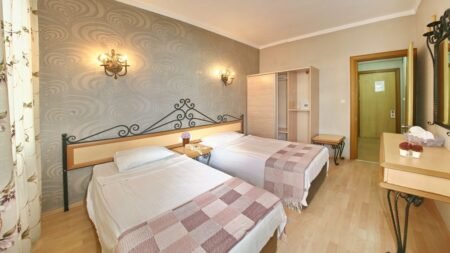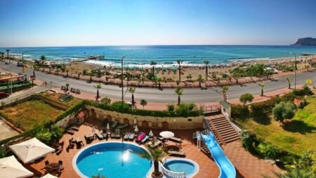 Zomer Wanneer je tussen 01-04-2025 en 31-10-2025 in deze accommodatie verblijft, is onderstaande informatie van toepassing. * Ligging * Gelegen aan het openbare strand * Openbaar strand * Ligbedden * Parasol * Centrum van Alanya op circa 2,5 kilometer * Dichtstbijzijnde winkel op circa 100 meter * Dichtstbijzijnde restaurant op circa 100 meter * Dichtstbijzijnde bar op circa 100 meter * Oba op circa 50 meter * Bushalte op circa 100 meter * Algemeen & faciliteiten * 1 gebouw * Maximaal 5 verdiepingen * 40 kamers * Receptie * Lobby * Wifi in alle openbare ruimtes * Winkel (minimarkt) * Wasservice tegen betaling * Doktersservice tegen betaling * Tuin * Openbare parkeergelegenheid * Restaurants & bars * À-la-carterestaurant * Roomservice tegen betaling * Drinkgelegenheid * Poolbar * Zwembaden * Buitenzwembad * Glijbaan * Buitenzwembad voor kinderen * Zonneterras * Ligbedden * Parasol * Kinderfaciliteiten * Buitenspeeltuin * Babybedje * Verzorging * Logies * Logies & Ontbijt * Ontbijt in buffetvormHotelkamers * 2-kamerappartement 2A * Oppervlakte van circa 50 m² * Zeezicht * Woon-/slaapkamer * Slaapbank voor twee personen * Eén slaapkamer * Airconditioning tegen betaling * Kluisje tegen betaling * Televisie * Telefoon tegen betaling * Eet- en drinkfaciliteiten * Koffie- en theefaciliteiten * Mini koelkast * Badkamer met douche en föhn * Wifi * Balkon of terras (zitje)