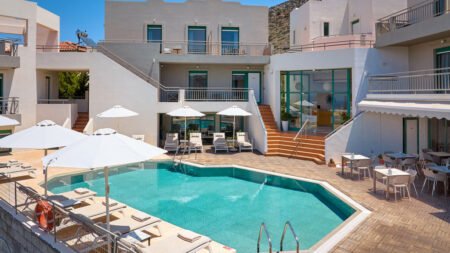 Zomer Wanneer je tussen 15-04-2025 en 31-10-2025 in deze accommodatie verblijft, is onderstaande informatie van toepassing. * Ligging * Gelegen op een heuvel * Openbaar strand op circa 2500 meter * Zandstrand * Dichtstbijzijnde restaurant op circa 200 meter * Dichtstbijzijnde bar op circa 200 meter * Aqua Park op circa 2 kilometer * Golfbaan op circa 2 kilometer * Chersonissos op circa 200 meter * Bushalte op circa 2500 meter * Taxistandplaats op circa 0 meter * Algemeen & faciliteiten * 1 gebouw * Maximaal 2 verdiepingen * 20 kamers * Receptie * Inchecken vanaf 08.00 uur * Lobby * Bagageruimte * Doucheruimte bij aankomst en vertrek * Wifi in alle openbare ruimtes gratis * Tuin * Openbare parkeergelegenheid * Restaurants & bars * À-la-carterestaurant * Roomservice tegen betaling * Drinkgelegenheid * Bar * Activiteiten & ontspanning * Tafeltennis gratis * Gameroom toegang tegen betaling * Zwembaden * Buitenzwembad * Zonneterras * Ligbedden met matrasjes gratis * Parasol gratis * Kinderfaciliteiten * Babybedje als preferentie toe te voegen in het boekingsformulier gratis * Verzorging * Logies & Ontbijt * Ontbijt in buffetvorm of à la carteHotelkamers * Studio Standaard SZ * Laaggelegen * Tuinzicht * Airconditioning tegen betaling * Kluisje * Satelliettelevisie * Telefoon * Kitchenette * Kookstel met 2 kookplaten * Koelkast * Badkamer met inloopdouche, toilet en föhn * Wifi * Balkon of terras (zitje) * Late check-out tegen betaling * Studio Standaard Zeezicht SZM * Zeezicht * Airconditioning tegen betaling * Kluisje * Satelliettelevisie * Telefoon * Kitchenette * Kookstel met 2 kookplaten * Oven * Koffie- en theefaciliteiten * Koelkast * Badkamer met inloopdouche, toilet en föhn * Wifi * Late check-out tegen betaling * 2-kamerappartement 2A * Op de begane grond * Tuinzicht * Woon-/slaapkamer * Airconditioning tegen betaling * Telefoon * Kitchenette * Kookstel met 2 kookplaten * Koffie- en theefaciliteiten * Koelkast * Badkamer met inloopdouche, toilet en föhn * Wifi * Balkon of terras (zitje) * Late check-out tegen betaling * 2-kamerappartement Zeezicht 2A1 * Zeezicht * Woon-/slaapkamer * Airconditioning tegen betaling * Kluisje * Satelliettelevisie * Kitchenette * Kookstel met 2 kookplaten * Oven * Koffie- en theefaciliteiten * Koelkast * Badkamer met inloopdouche, toilet en föhn * Wifi * Balkon (zitje) * Late check-out tegen betaling