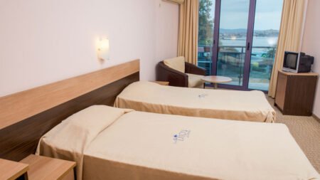 Zomer Wanneer je tussen 01-05-2025 en 30-09-2025 in deze accommodatie verblijft, is onderstaande informatie van toepassing. * Ligging * Gelegen aan het privéstrand * Zandstrand * Ligbedden tegen betaling * Parasol tegen betaling * Dichtstbijzijnde restaurant op circa 300 meter * Aquapark Nessebar op circa 2 kilometer * Camel Park op circa 4 kilometer * Nesebar op circa 4 kilometer * Bushalte op circa 300 meter * Algemeen & faciliteiten * 1 gebouw * Maximaal 5 verdiepingen * 77 kamers * Receptie * 24 uur per dag * Lobby * Lift * Wifi in diverse openbare ruimtes * Winkel (minimarkt) * Doktersservice tegen betaling * Privé parkeergelegenheid * Openbare parkeergelegenheid * Restaurants & bars * Buffetrestaurant * À-la-carterestaurant * Roomservice tegen betaling * 3 drinkgelegenheden * Beachbar * Lobbybar * Skybar * Zwembaden * Buitenzwembad * Buitenzwembad voor kinderen * Zonneterras * Ligbedden gratis * Parasol gratis * Kinderfaciliteiten * Babybedje op aanvraag via ons contact center * Verzorging * Logies & Ontbijt * Ontbijt in buffetvorm (07.30-10.00 uur) * Volpension * Ontbijt in buffetvorm (07.30-10.00 uur) * Lunch in buffetvorm (12.30-14.30 uur) * Diner in buffetvorm (18.00-21.00 uur)Hotelkamers * 2-persoonskamer Standaard DZ * Oppervlakte circa 30 m² * Straatzicht * Airconditioning * Kluisje tegen betaling * Televisie * Telefoon tegen betaling * Eet- en drinkfaciliteiten * Mini koelkast * Minibar tegen betaling * Badkamer met inloopdouche, toilet en föhn * Wifi * Terras (zitje) * 2-persoonskamer Standaard Zeezicht DZM * Oppervlakte circa 30 m² * Zeezicht * Airconditioning * Kluisje tegen betaling * Televisie * Telefoon tegen betaling * Eet- en drinkfaciliteiten * Mini koelkast * Minibar tegen betaling * Badkamer met inloopdouche, toilet en föhn * Wifi * Terras (zitje) * 2-persoonskamer Deluxe DD * Oppervlakte circa 22 m² * Zeezicht * Airconditioning * Kluisje tegen betaling * Televisie * Telefoon tegen betaling * Eet- en drinkfaciliteiten * Minibar tegen betaling * Badkamer met inloopdouche, toilet en föhn * Wifi * Terras (zitje)